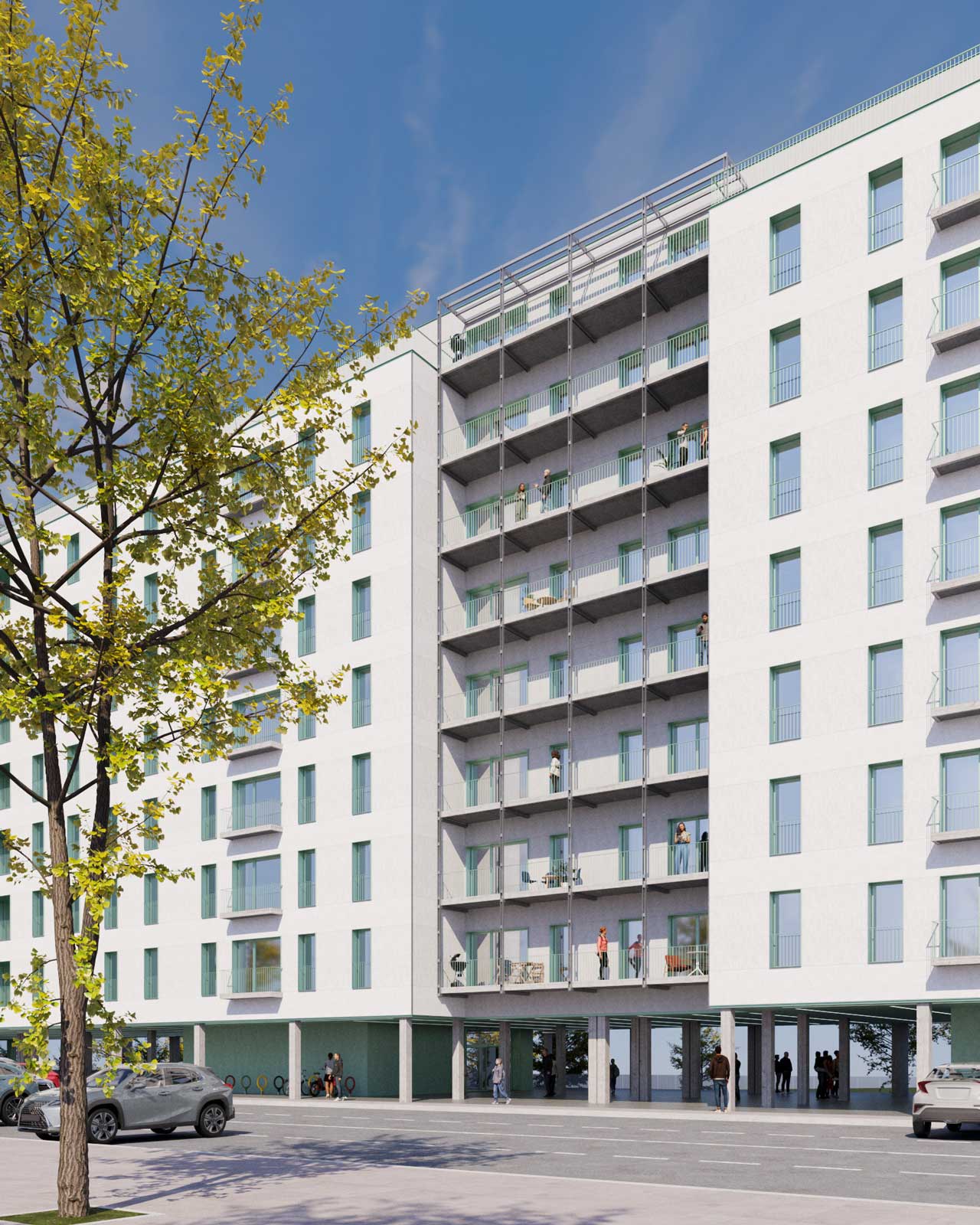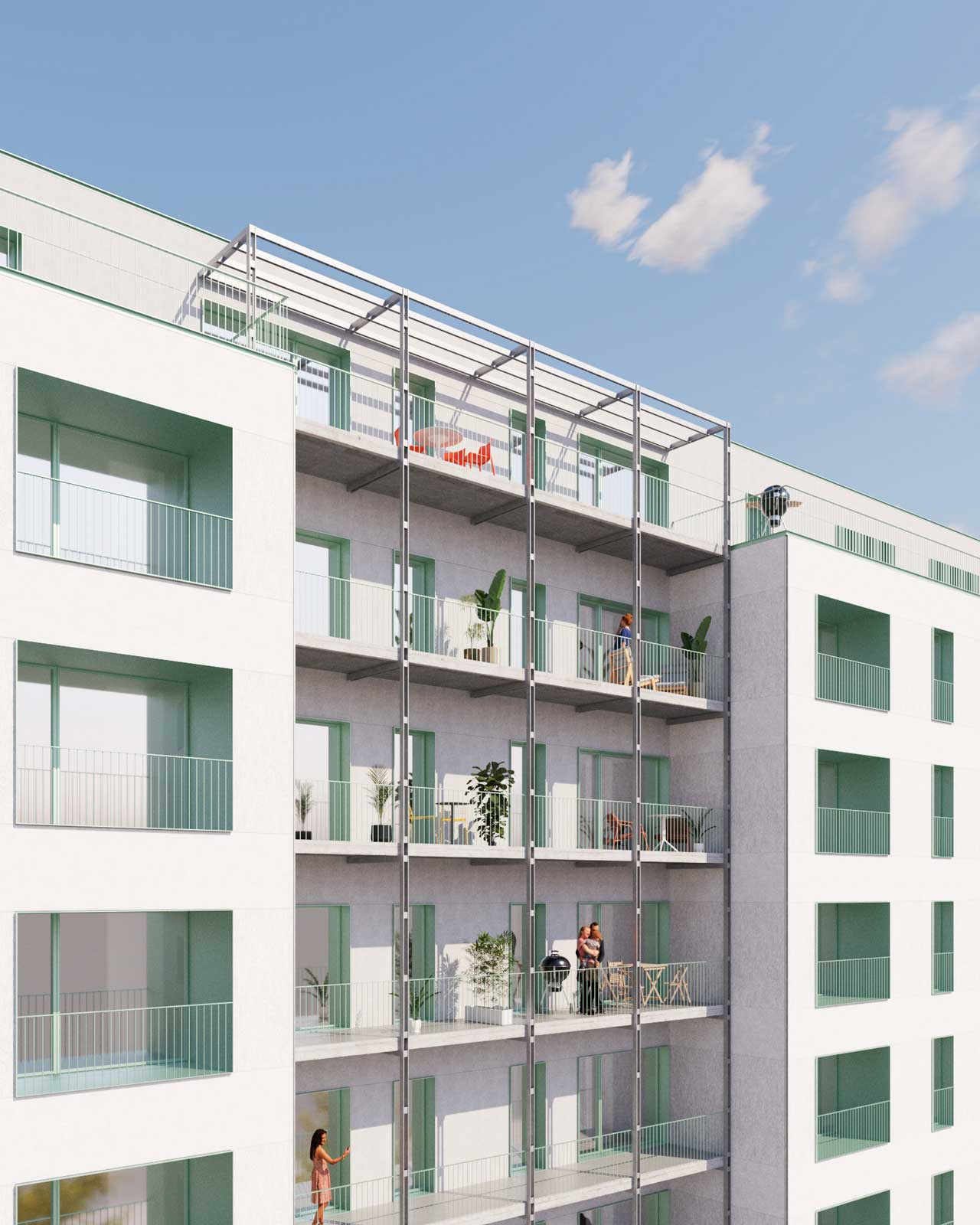 The primary functional objective has been to guarantee the maximum spatial, lighting, and ventilation quality for each home. To this end, the project prioritizes “pass-through” (dual-aspect) units and fully exterior units, completely eliminating interior courtyards.